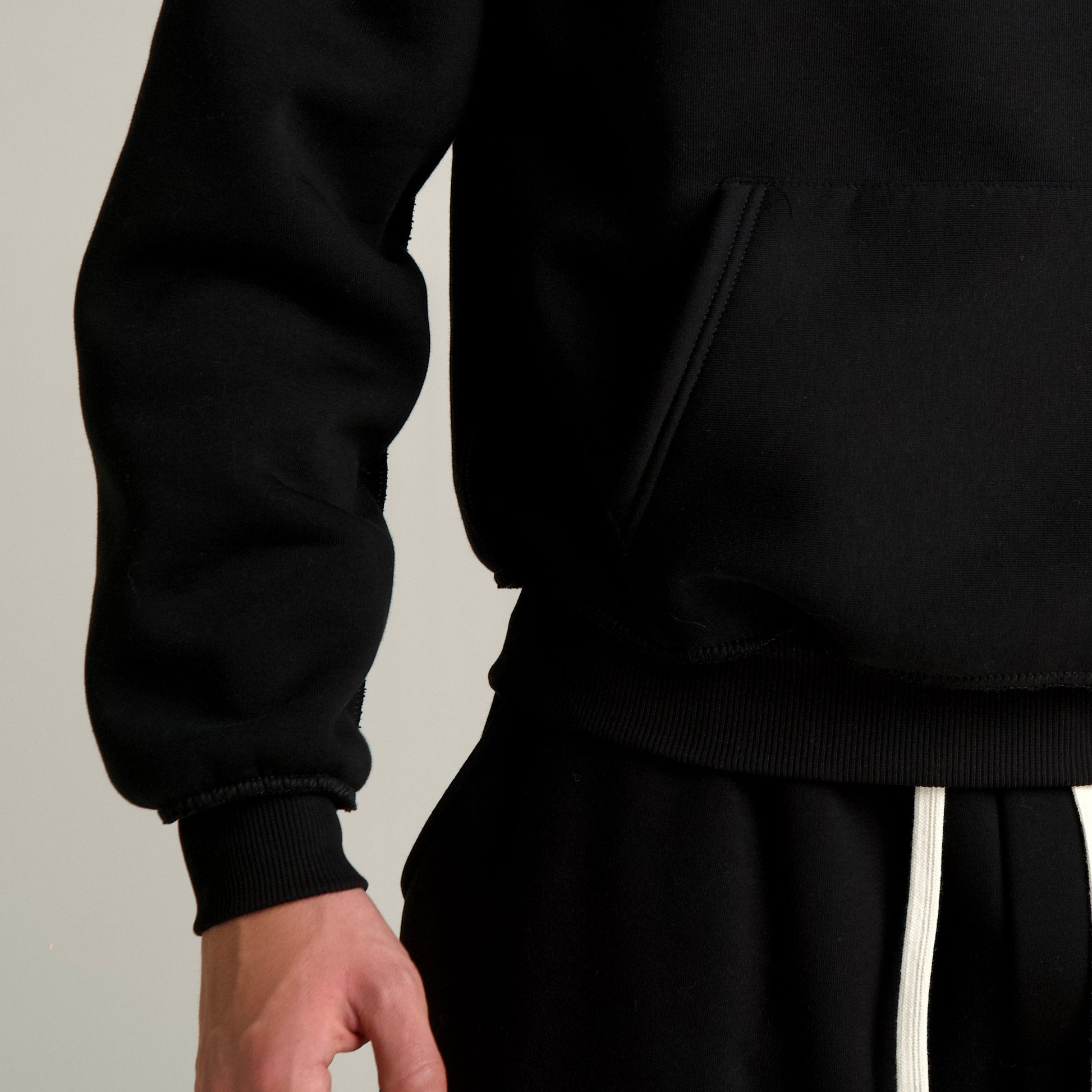 Felpa realizzata in tessuto misto cotone. Modello con cappuccio e vestibilità relaxed. Maniche lunghe con polsini elasticizzati. Dettaglio di cuciture esterne a vista. Design essenziale.